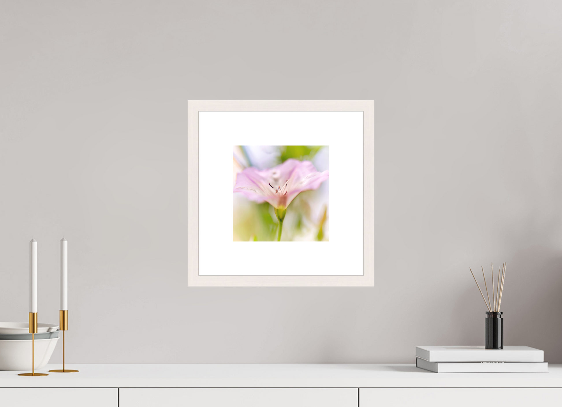 mit mattem Floatglas. Ausführung in Ahorn weiß, 20 mm. Das Passepartout (Museumskarton) schließt durch einen präzisen Schrägschnitt bündig an dem Foto ab. Es besteht aus säurefreiem und extrem lichtbeständigem Material und hat eine Stärke von 1,4 mm.