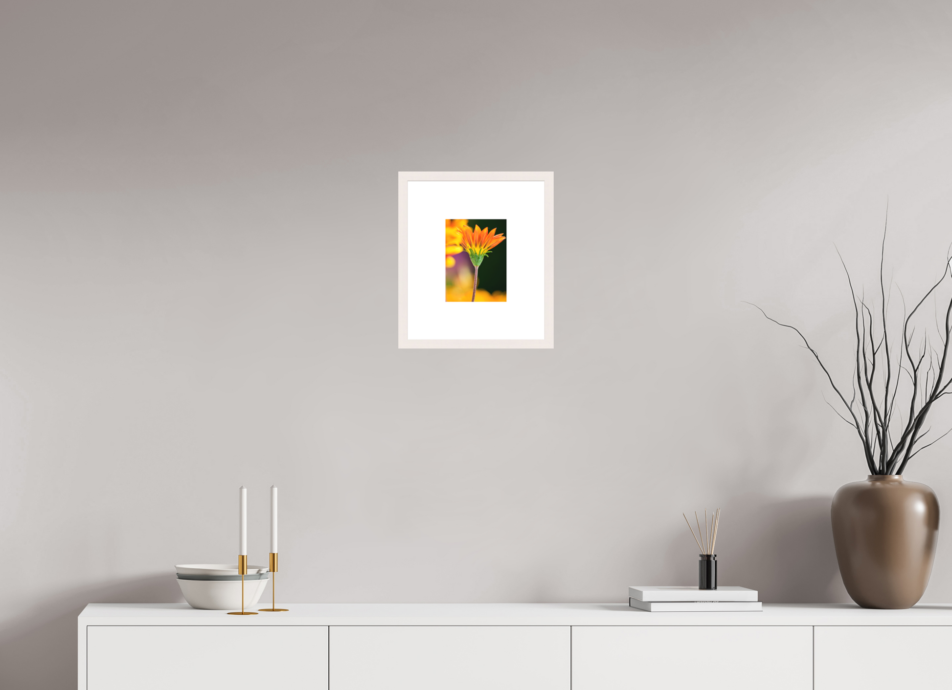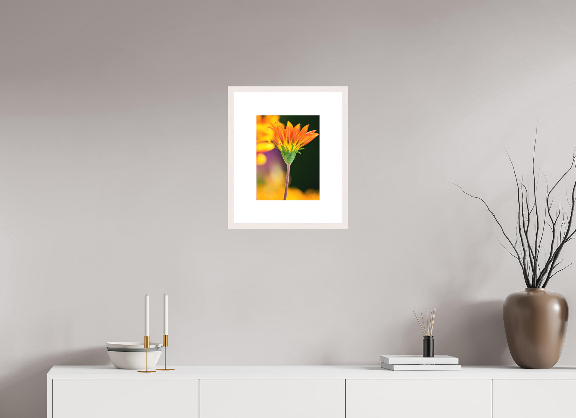 mit mattem Floatglas, Ausführung in Ahorn weiß, 20 mm Passepartout. Das Passepartout (Museumskarton) schließt durch einen präzisen Schrägschnitt bündig an dem Foto ab. Er besteht aus säurefreiem und extrem lichtbeständigem Material und hat eine Stärke von 1,4 mm.